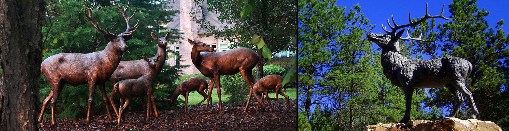 Published . Size: 2000 × 516 in Bronze Deer Family of Six and Majestic Elk by Metropolitan Galleries Inc