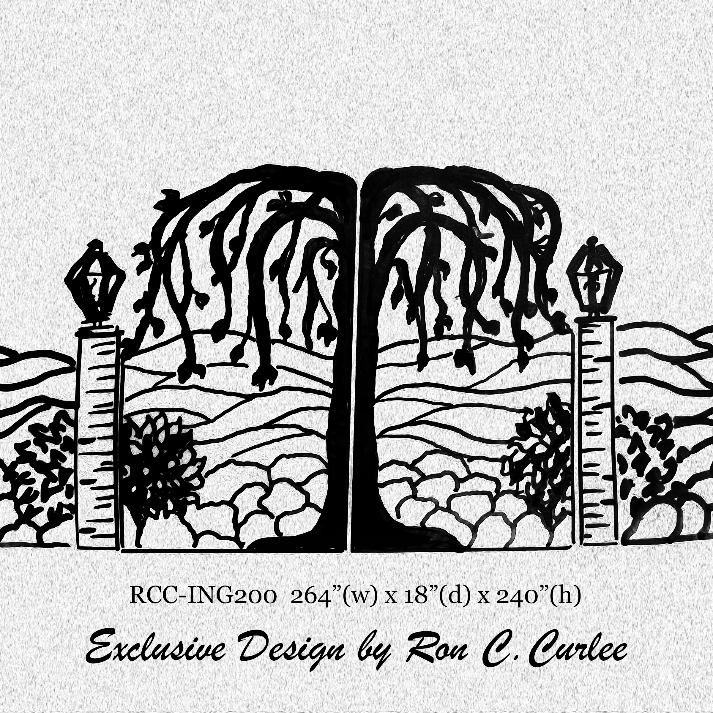 Published . Size: 2400 × 2400 in RCC-ING200 Iron Willow Tree Driveway Gate with Column Lanterns by Artist Ron Curlee Metropolitan Galleries Inc