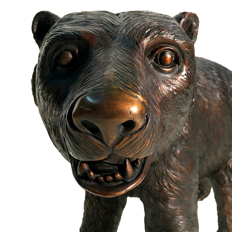 Our bronze sculpture selection may also be customized in a number of fire-applied patinas, such as classic French Brown, Verdigris, Italian Green as well as other custom finish options. All bronze statuary will develop a natural patina when left in natures elements. The aged patina on bronzes is often desired, but can be prevented by care and cleaning of the bronze statue by applying beeswax or other polish to prevent a patina from forming. Click here to view our Bronze Sculpture and Fountain Care and Cleaning Guide. Should you have questions about this Bronze Medium Standing Bear Sculpture, please reach out to our corporate office and warehouse. 1-800-929-1681.