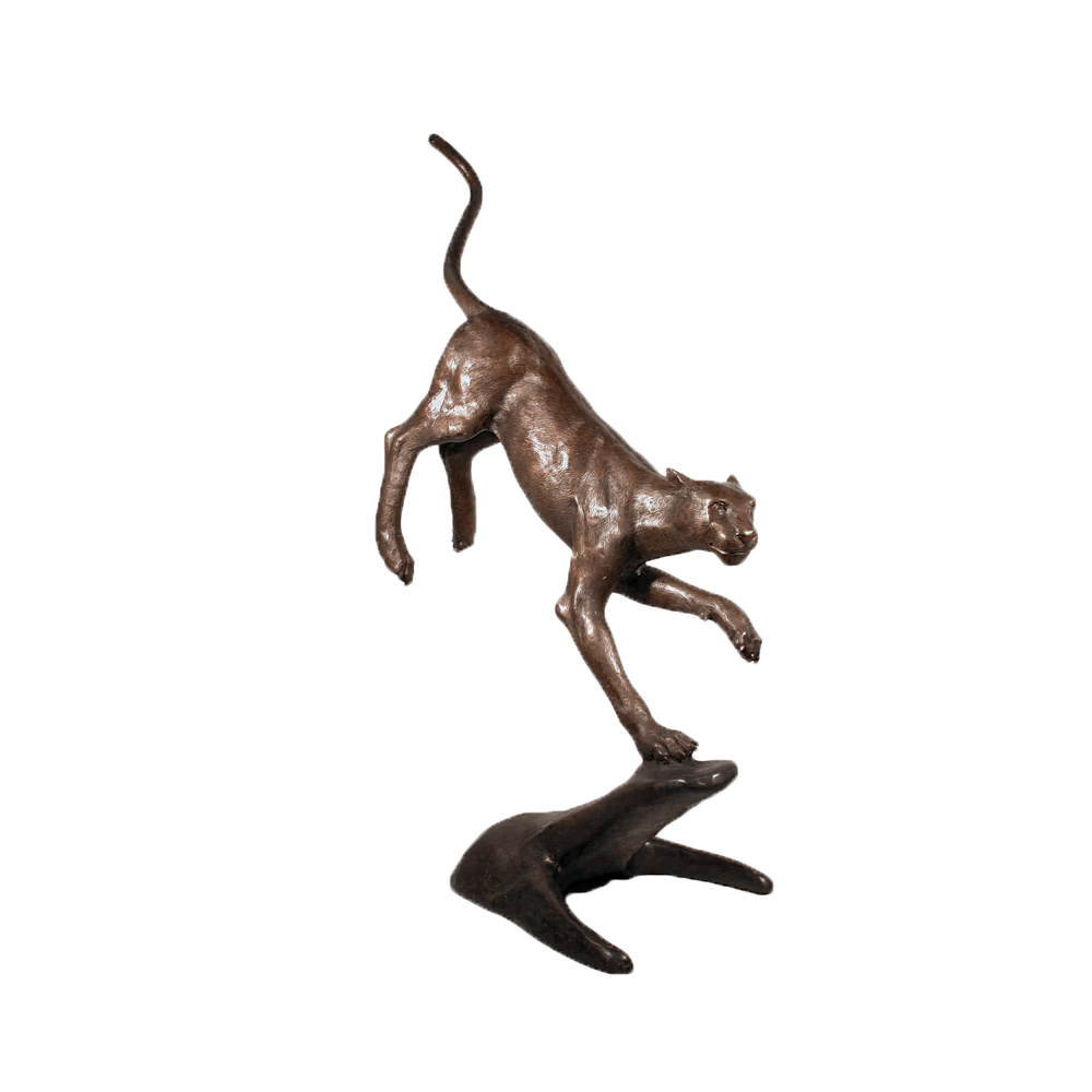 Bronze Leaping Cougar Sculpture by Metropolitan Galleries was cast by the traditional, Lost Wax Bronze Casting method. This labor intensive and time consuming method of casting bronze statues, ensure pristine quality and vivid detail. Metropolitan Galleries Inc. Offers a large selection of bronze statues and bronze fountains perfect for indoor and outdoor use. This Bronze Leaping Cougar Sculpture features intricate, hand forged details with a beautiful brown, fire-applied patina. We proudly ship to all fifty states, as well as international shipping.