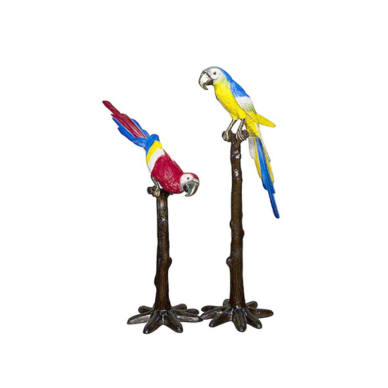 Bronze Colorful Parrots on Perch Sculpture Set by Metropolitan Galleries was cast by the traditional, Lost Wax Bronze Casting method. This labor intensive and time consuming method of casting bronze statues, ensure pristine quality and vivid detail. Metropolitan Galleries Inc. Offers a large selection of bronze statues and bronze fountains perfect for indoor and outdoor use. This Bronze Colorful Parrots on Perch Sculpture Set features intricate, hand forged details with a beautiful brown, fire-applied patina. We proudly ship to all fifty states, as well as international shipping.