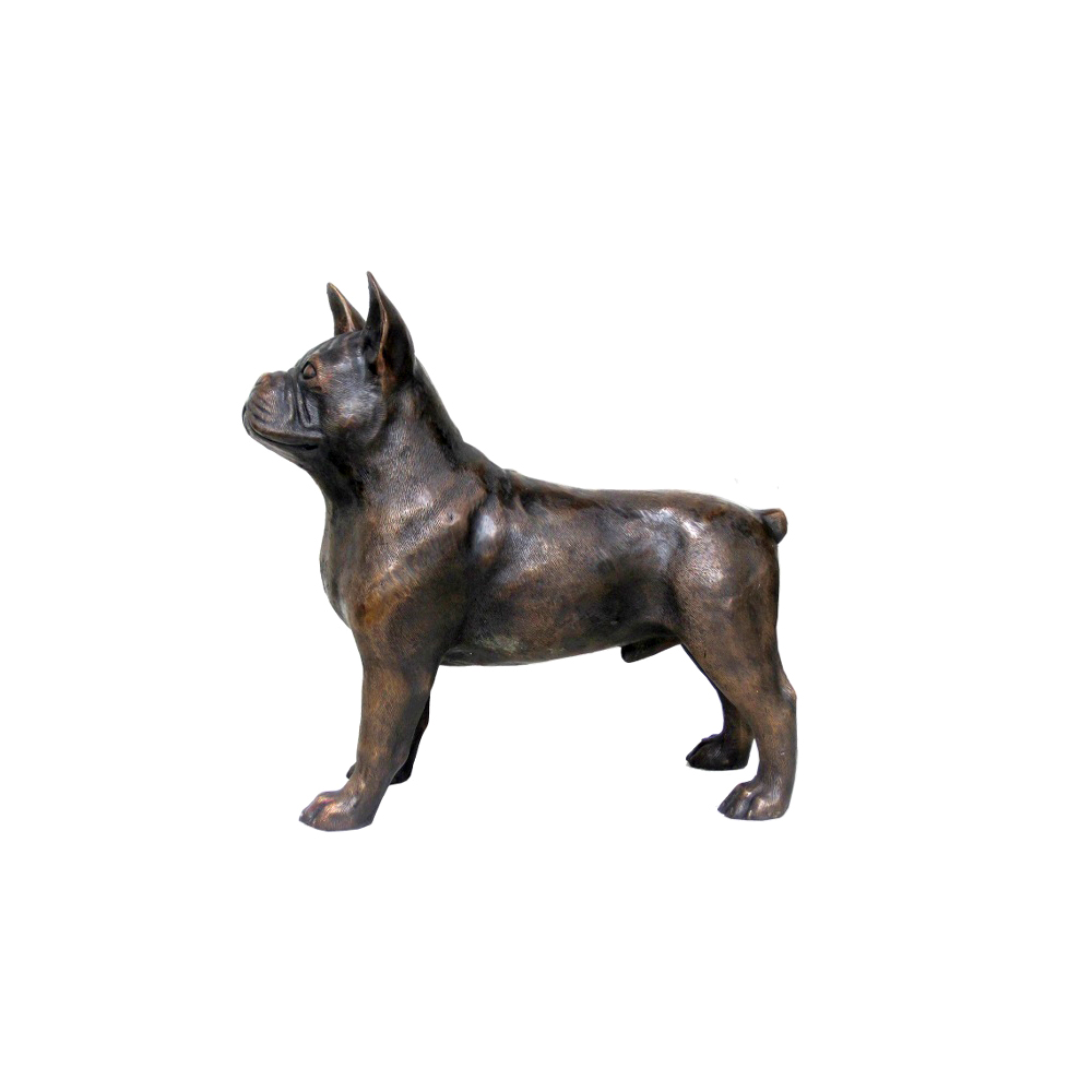 Our bronze sculpture and fountain selection may also be customized in a number of fire-applied patinas, such as classic French Brown, Verdigris, Italian Green as well as other custom finish options. All bronze statuary will develop a natural patina when left in natures elements. The aged patina on bronzes is often desired, but can be prevented by care and cleaning of the bronze statue by applying beeswax or other polish to prevent a patina from forming. Click here to view our Bronze Sculpture and Fountain Care and Cleaning Guide. Should you have questions about this Bronze French Bulldog Sculpture, please reach out to our corporate office and warehouse. 1-800-929-1681.