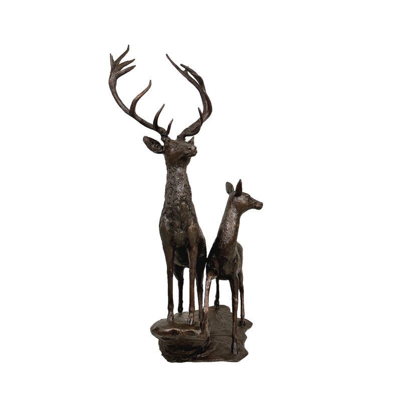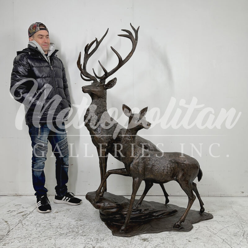 Bronze Buck & Doe on Rock Sculpture by Metropolitan Galleries was cast by the traditional, Lost Wax Bronze Casting method. This labor intensive and time consuming method of casting bronze statues, ensure pristine quality and vivid detail. Metropolitan Galleries Inc. Offers a large selection of bronze statues and bronze fountains perfect for indoor and outdoor use. This Bronze Buck & Doe on Rock Sculpture features intricate, hand forged details with a beautiful brown, fire-applied patina. We proudly ship to all fifty states, as well as international shipping.