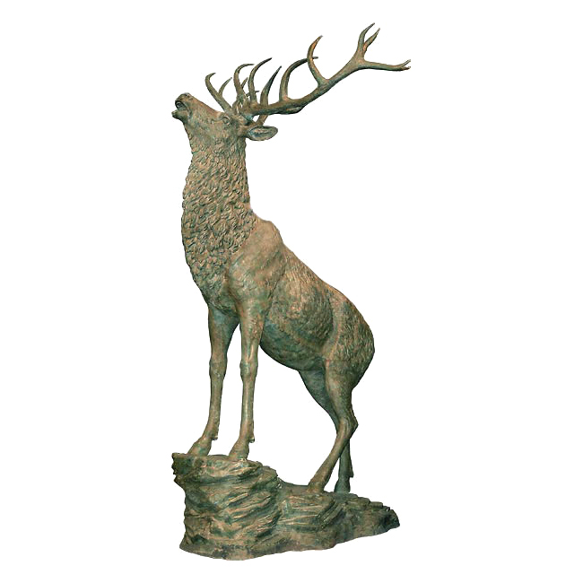 Our bronze sculpture and fountain selection may also be customized in a number of fire-applied patinas, such as classic French Brown, Verdigris, Italian Green as well as other custom finish options. All bronze statuary will develop a natural patina when left in natures elements. The aged patina on bronzes is often desired, but can be prevented by care and cleaning of the bronze statue by applying beeswax or other polish to prevent a patina from forming. Click here to view our Bronze Sculpture and Fountain Care and Cleaning Guide. Should you have questions about this Bronze Elk on Rock Sculpture, please reach out to our corporate office and warehouse. 1-800-929-1681.