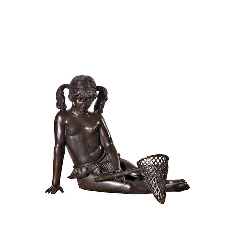 Bronze Sitting Girl with Fishing Net Sculpture by Metropolitan Galleries was cast by the traditional, Lost Wax Bronze Casting method. This labor intensive and time consuming method of casting bronze statues, ensure pristine quality and vivid detail. Metropolitan Galleries Inc. Offers a large selection of bronze statues and bronze fountains perfect for indoor and outdoor use. This Bronze Sitting Girl with Fishing Net Sculpture features intricate, hand forged details with a beautiful verdigris, fire-applied patina. We proudly ship to all fifty states, as well as international shipping.