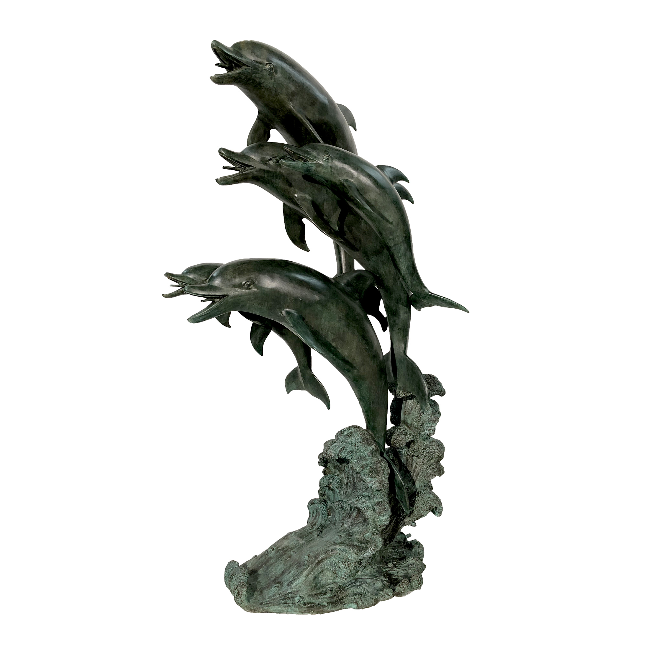 Our bronze sculpture selection may also be customized in a number of fire-applied patinas, such as classic French Brown, Verdigris, Italian Green as well as other custom finish options. All bronze statuary will develop a natural patina when left in natures elements. The aged patina on bronzes is often desired, but can be prevented by care and cleaning of the bronze statue by applying beeswax or other polish to prevent a patina from forming. Click here to view our Bronze Sculpture and Fountain Care and Cleaning Guide. Should you have questions about this Bronze Five Dolphins Fountain Sculpture, please reach out to our corporate office and warehouse. 1-800-929-1681.