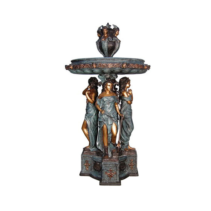Our bronze sculpture selection may also be customized in a number of fire-applied patinas, such as classic French Brown, Verdigris, Italian Green as well as other custom finish options. All bronze statuary will develop a natural patina when left in natures elements. The aged patina on bronzes is often desired, but can be prevented by care and cleaning of the bronze statue by applying beeswax or other polish to prevent a patina from forming. Click here to view our Bronze Sculpture and Fountain Care and Cleaning Guide. Should you have questions about this Bronze Three Ladies Bowl Fountain, please reach out to our corporate office and warehouse. 1-800-929-1681.