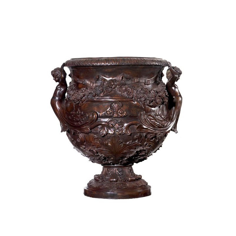 Bronze Floral & Cherubs Planter Urn by Metropolitan Galleries was cast by the traditional, Lost Wax Bronze Casting method. This labor intensive and time consuming method of casting bronze statues, ensure pristine quality and vivid detail. Metropolitan Galleries Inc. Offers a large selection of bronze statues and bronze fountains perfect for indoor and outdoor use. This Bronze Floral & Cherubs Planter Urn Sculpture features intricate, hand forged details with a beautiful brown fire-applied patina. We proudly ship to all fifty states, as well as international shipping.