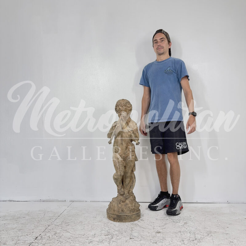 Bronze Boy with Pipes Fountain Sculpture by Metropolitan Galleries was cast by the traditional, Lost Wax Bronze Casting method. This labor intensive and time consuming method of casting bronze statues, ensure pristine quality and vivid detail. Metropolitan Galleries Inc. Offers a large selection of bronze statues and bronze fountains perfect for indoor and outdoor use. This Bronze Boy with Pipes Fountain Sculpture features intricate, hand forged details with a beautiful Sand Green, fire-applied patina. We proudly ship to all fifty states, as well as international shipping.