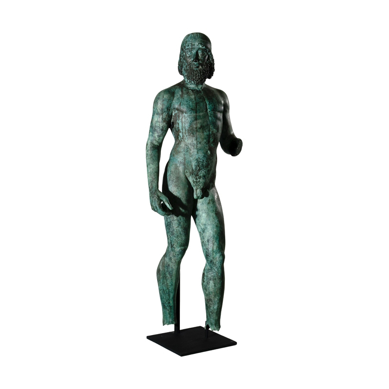 Our bronze sculpture selection may also be customized in a number of fire-applied patinas, such as classic French Brown, Verdigris, Italian Green as well as other custom finish options. All bronze statuary will develop a natural patina when left in natures elements. The aged patina on bronzes is often desired, but can be prevented by care and cleaning of the bronze statue by applying beeswax or other polish to prevent a patina from forming. Click here to view our Bronze Sculpture and Fountain Care and Cleaning Guide. Should you have questions about this Bronze Nude Roman Greco Male Partial Artifact Sculpture, please reach out to our corporate office and warehouse. 1-800-929-1681.