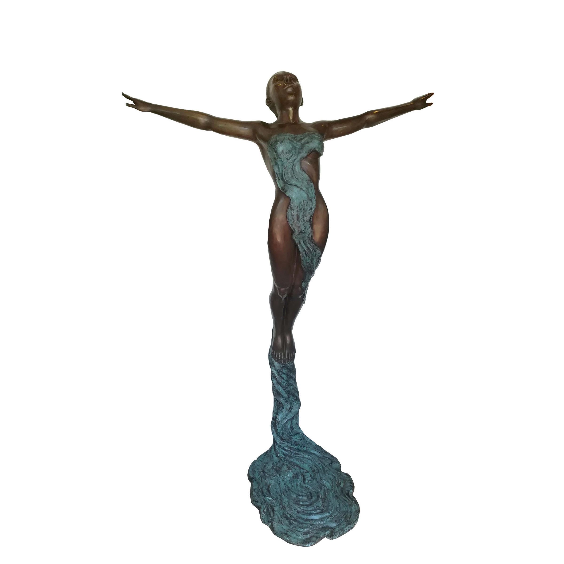 Bronze Lady on Wave Sculpture by Metropolitan Galleries was cast by the traditional, Lost Wax Bronze Casting method. This labor intensive and time consuming method of casting bronze statues, ensure pristine quality and vivid detail. Metropolitan Galleries Inc. Offers a large selection of bronze statues and bronze fountains perfect for indoor and outdoor use. This stunning Bronze Lady on Wave Sculpture features intricate, hand forged details with a beautiful brown and green, fire-applied patina. We proudly ship to all fifty states, as well as international shipping.