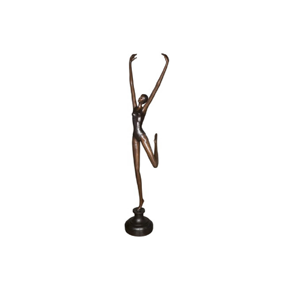 Our bronze sculpture selection may also be customized in a number of fire-applied patinas, such as classic French Brown, Verdigris, Italian Green as well as other custom finish options. All bronze statuary will develop a natural patina when left in natures elements. The aged patina on bronzes is often desired, but can be prevented by care and cleaning of the bronze statue by applying beeswax or other polish to prevent a patina from forming. Click here to view our Bronze Sculpture and Fountain Care and Cleaning Guide. Should you have questions about this Bronze Ballerina Sculpture, please reach out to our corporate office and warehouse. 1-800-929-1681.
