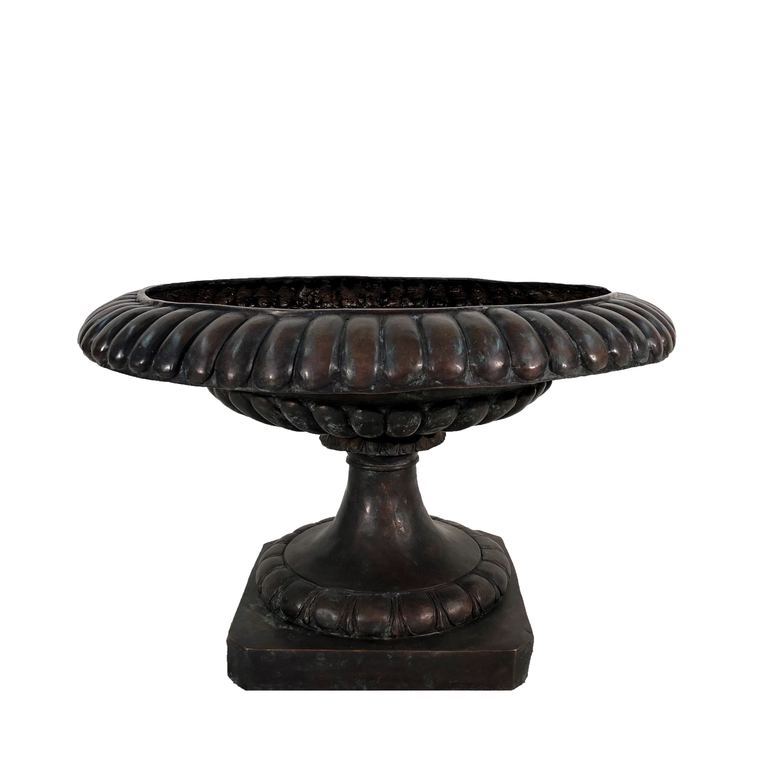 Our bronze sculpture selection may also be customized in a number of fire-applied patinas, such as classic French Brown, Verdigris, Italian Green as well as other custom finish options. All bronze statuary will develop a natural patina when left in natures elements. The aged patina on bronzes is often desired, but can be prevented by care and cleaning of the bronze statue by applying beeswax or other polish to prevent a patina from forming. Click here to view our Bronze Sculpture and Fountain Care and Cleaning Guide. Should you have questions about this Bronze Traditional Planter Urn, please reach out to our corporate office and warehouse. 1-800-929-1681.