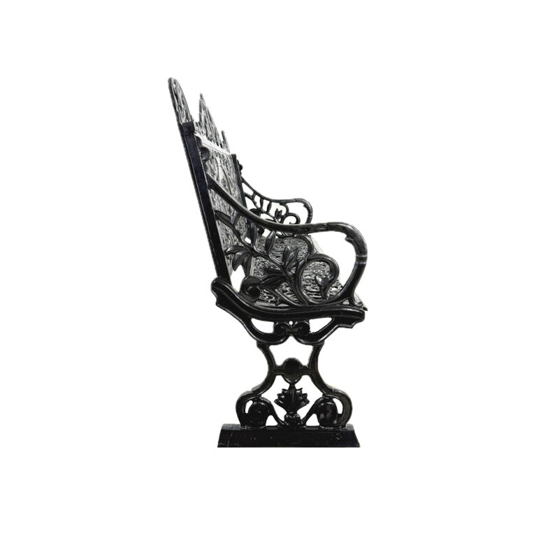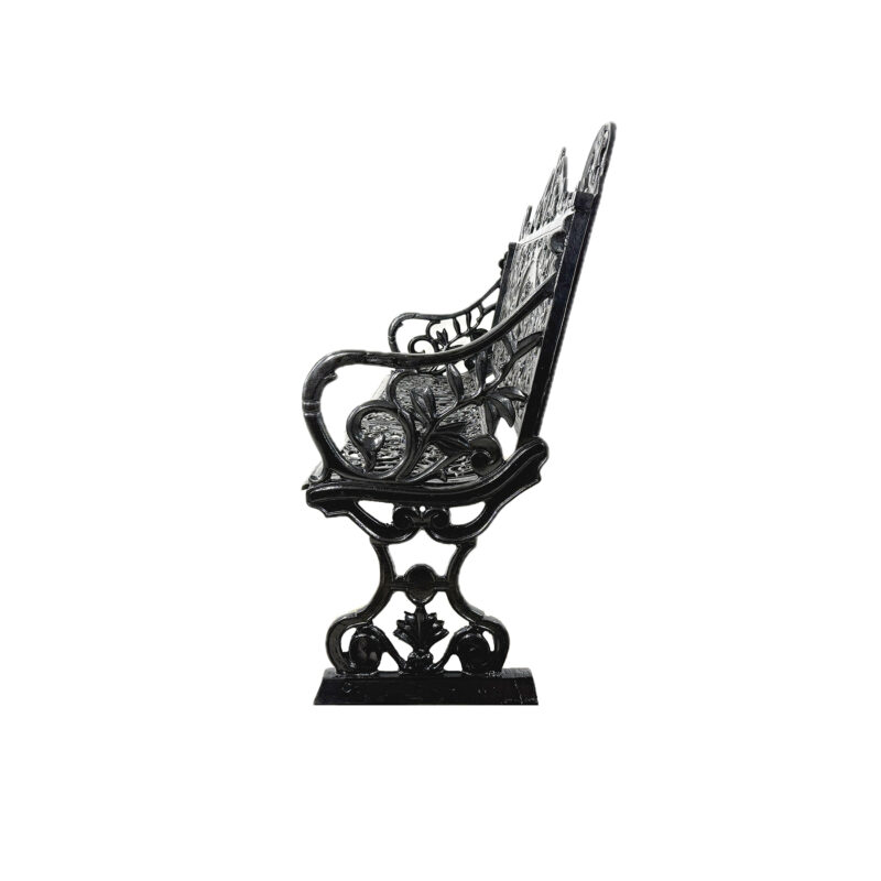 The Iron Ornamental Garden Bench by Metropolitan Galleries was crafted by skilled blacksmiths. Powder-coated with a gloss black finish.