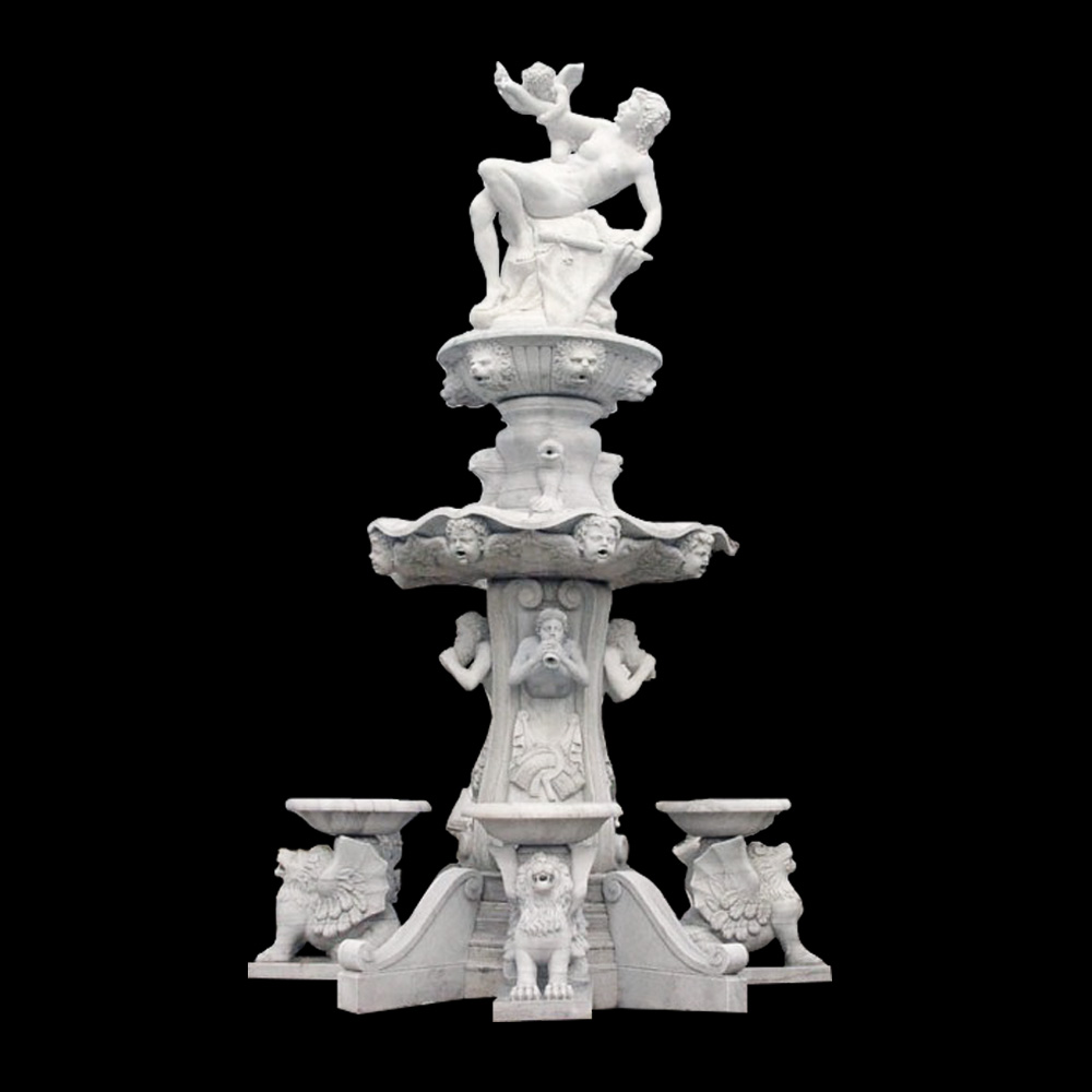 Marble Lady Tier Fountain with Cupids & Lions with Lions Horses & Surround by Metropolitan Galleries was carved by skilled sculptors, from quality marble stone. Marble sculpture is the art of creating three-dimensional forms from marble. Metropolitan Galleries offers a diverse and custom selection of carved marble fire place mantles, beautiful hand carved marble sculpture garden art items such as marble tier fountains, marble statuary, marble animal sculpture among an assortment of various genres and variable stone color selection, as well as custom sculpture development capabilities.