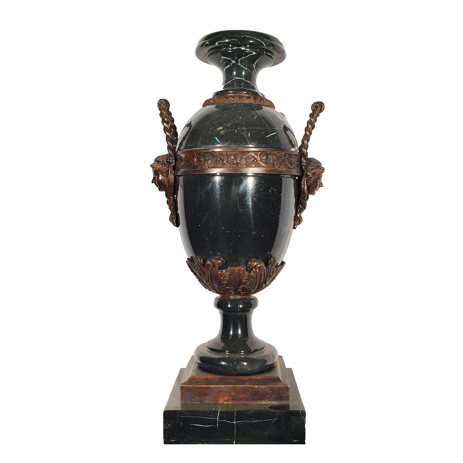 Black Marble Urn with Cast Bronze Egyptian Lady Handles & Accents