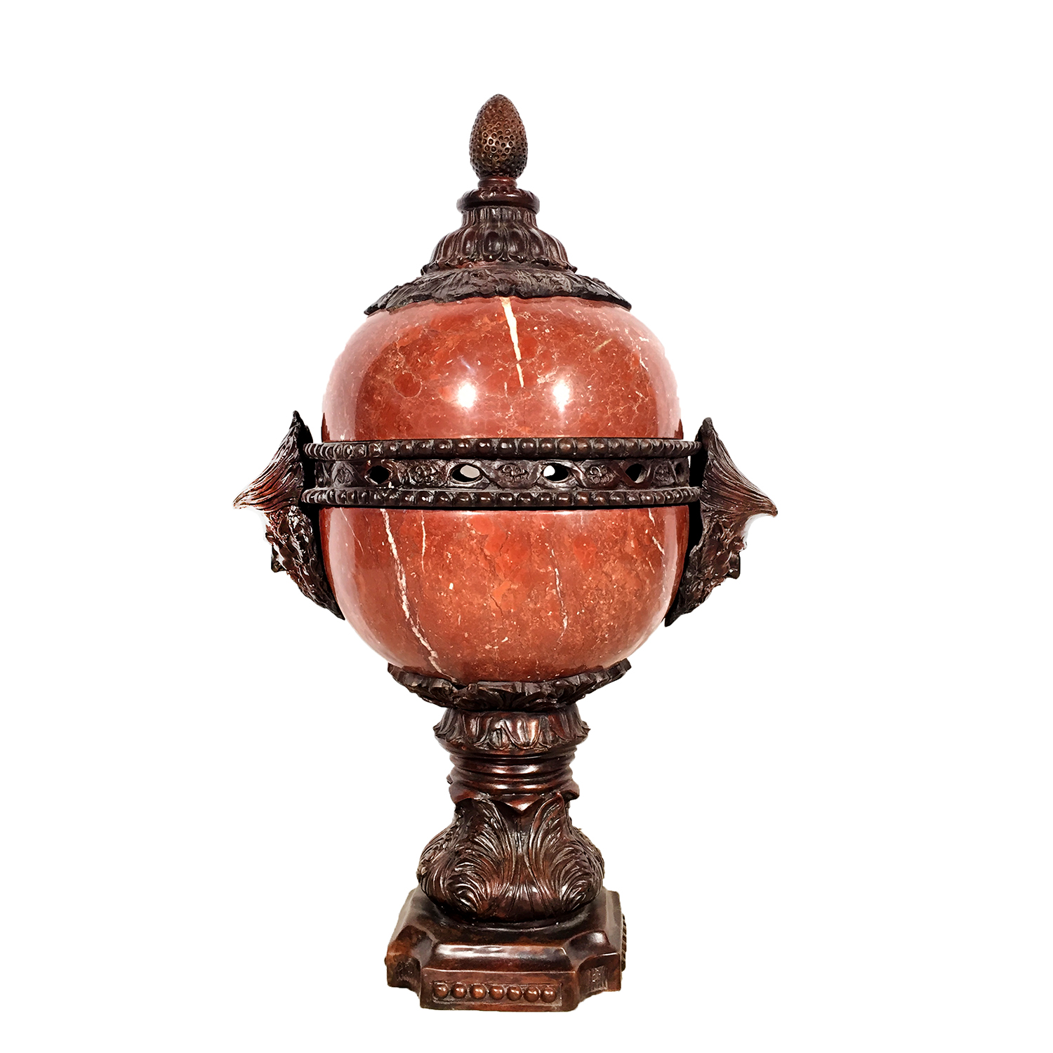 Red Marble Urn with Cast Bronze Accents, Lid & Base